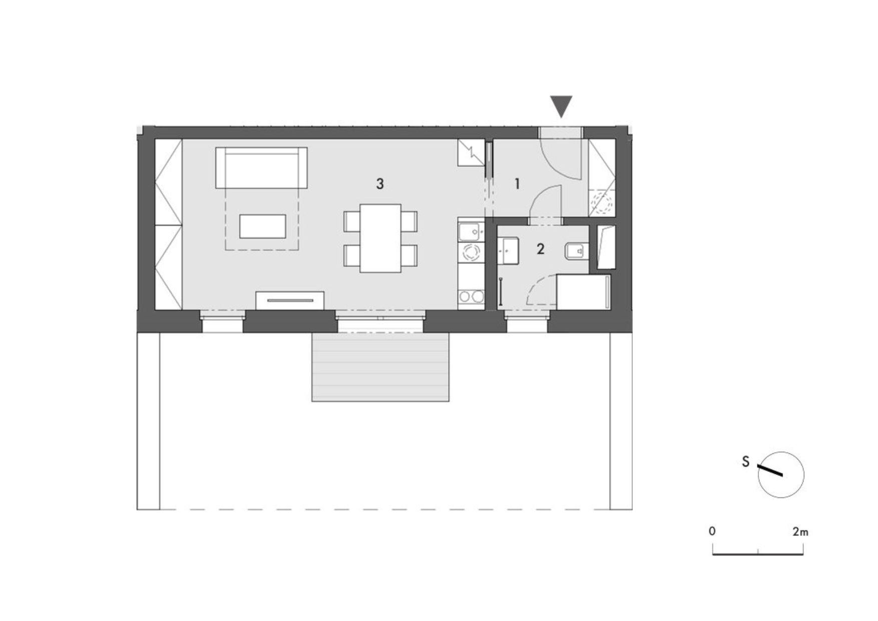Apartmán o dispozici 1+kk s podlahovou plochou 36,3 m² je ideální volbou pro dvě osoby. Hlavní obytná část s kuchyňským koutem o velikosti 27,5 m² je díky francouzskému oknu orientovanému na jihozápad příjemně světlá. Přímý vstup z obytného prostoru vede na předzahrádku o rozloze 38,5 m², která rozšiřuje možnosti bydlení a nabízí prostor pro venkovní posezení či relax.