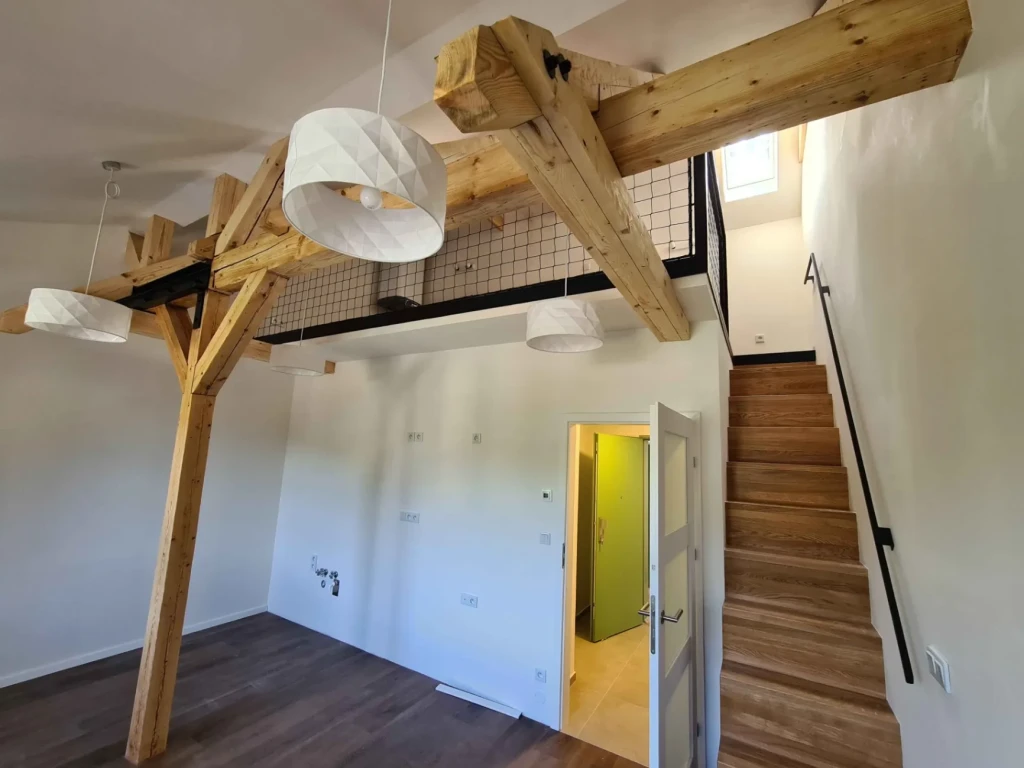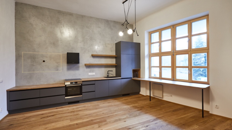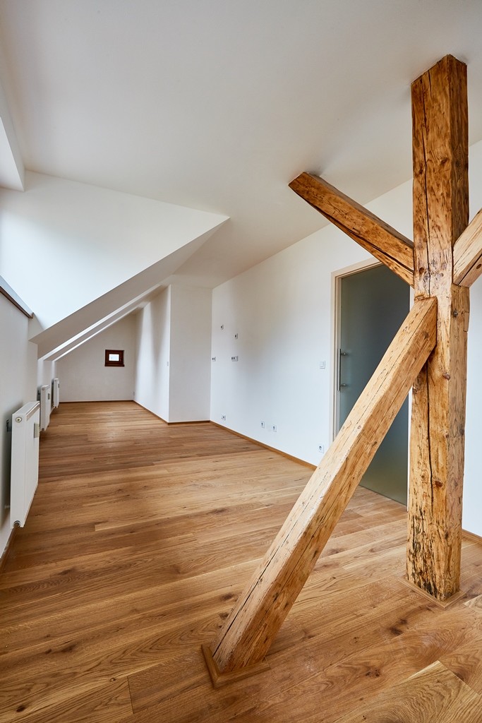 Podkroví bylo přestavěno na prostorné mezonetové apartmány a v nižších patrech vznikly nové bytové jednotky.