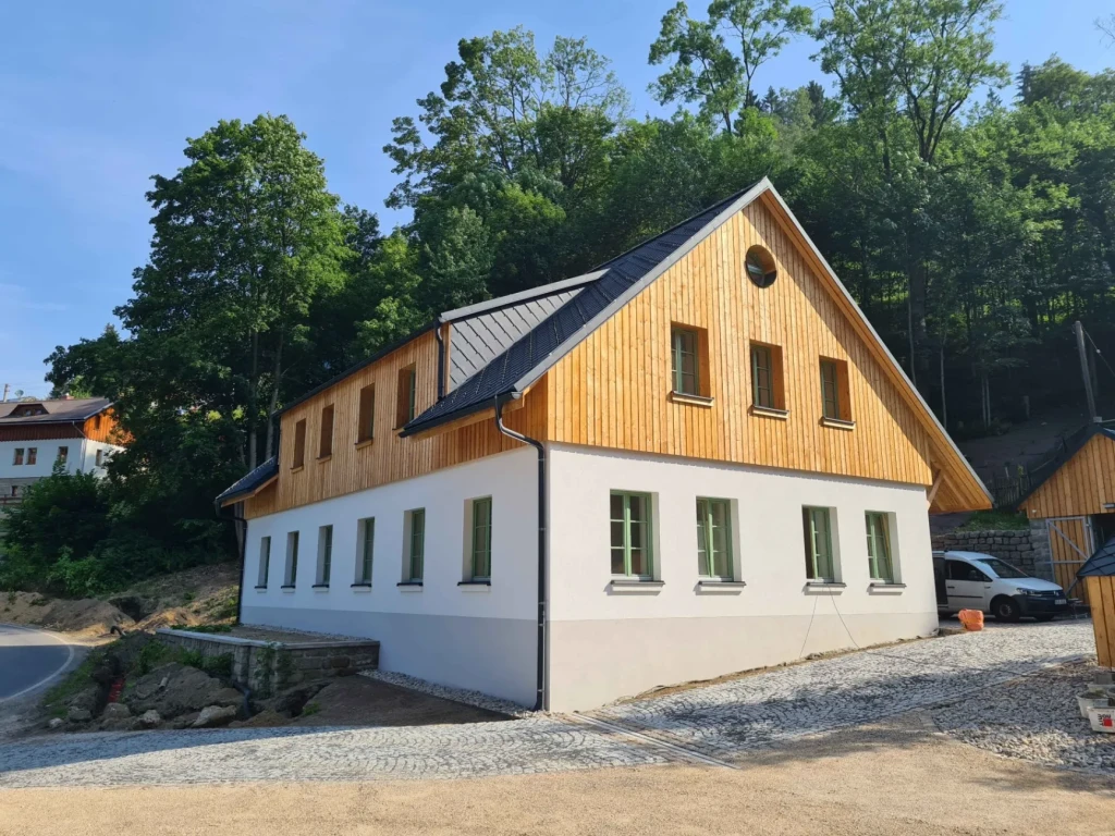 Rekonstrukcí domu Horní Rokytnice 1 vzniklo deset moderních apartmánů, které spojují horskou atmosféru s komfortem současného bydlení.